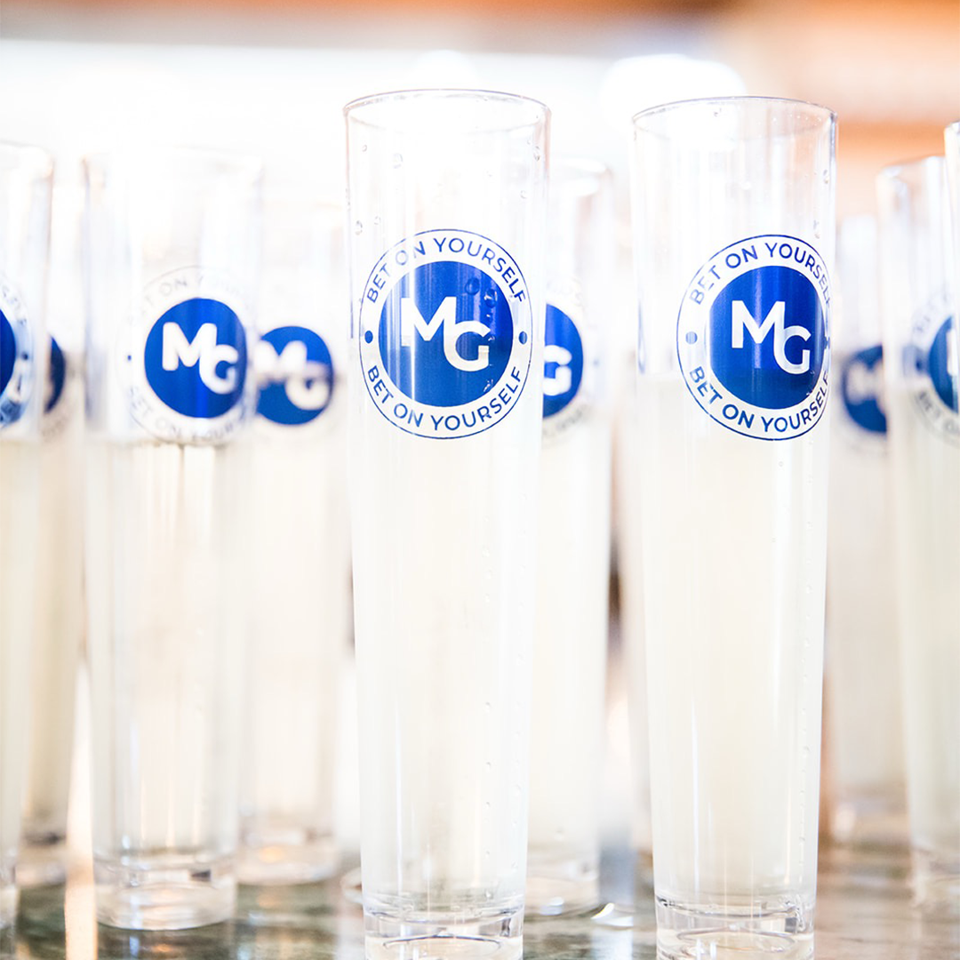 Set of Four Plastic Bet On Yourself™ champagne flutes.